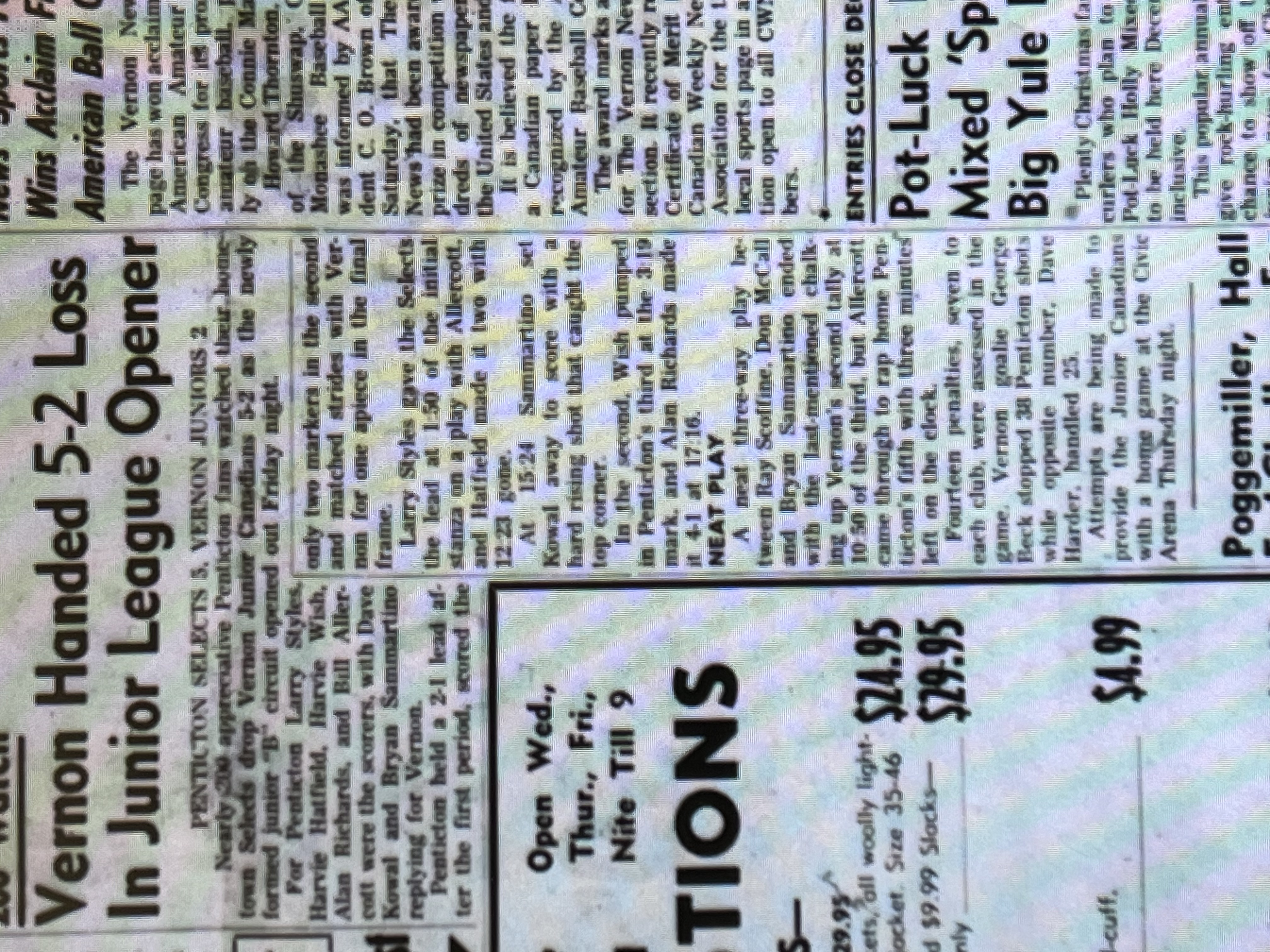 "Penticton officals blamed a shortage of players, poor spectator support and a $500 debt for forcing the Vees out of the OJHL picture. The club folded in early June after repeated and futile attempts to drum up local support."