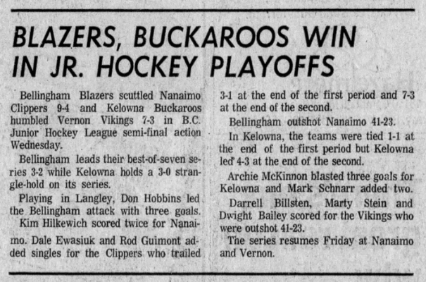 | 6 Sun. | @ Bellingham Blazers | 3 | 7 | Gm 5 (source) | |||